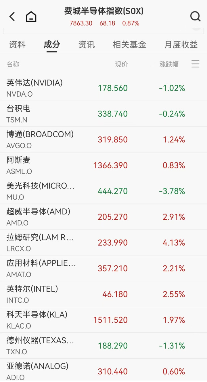 在市场整体承压的背景下,板块表现显著分化。芯片股逆势走强,费城半导体指数收涨0.87%,CredoTechnology涨超5%,AMD和英特尔均涨逾2%。光通信股表现亮眼,Lumentum大涨10.18%,存储概念股中希捷科技涨6.84%,西部数据跟涨。