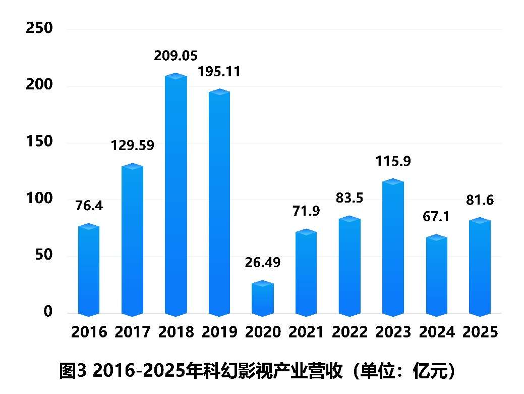 科幻影视产业全年总营收81.6亿元,同比增长21.6%。电影市场逐步回暖,国产科幻剧集和动画影响力持续提升,AIGC中短视频加速崛起。